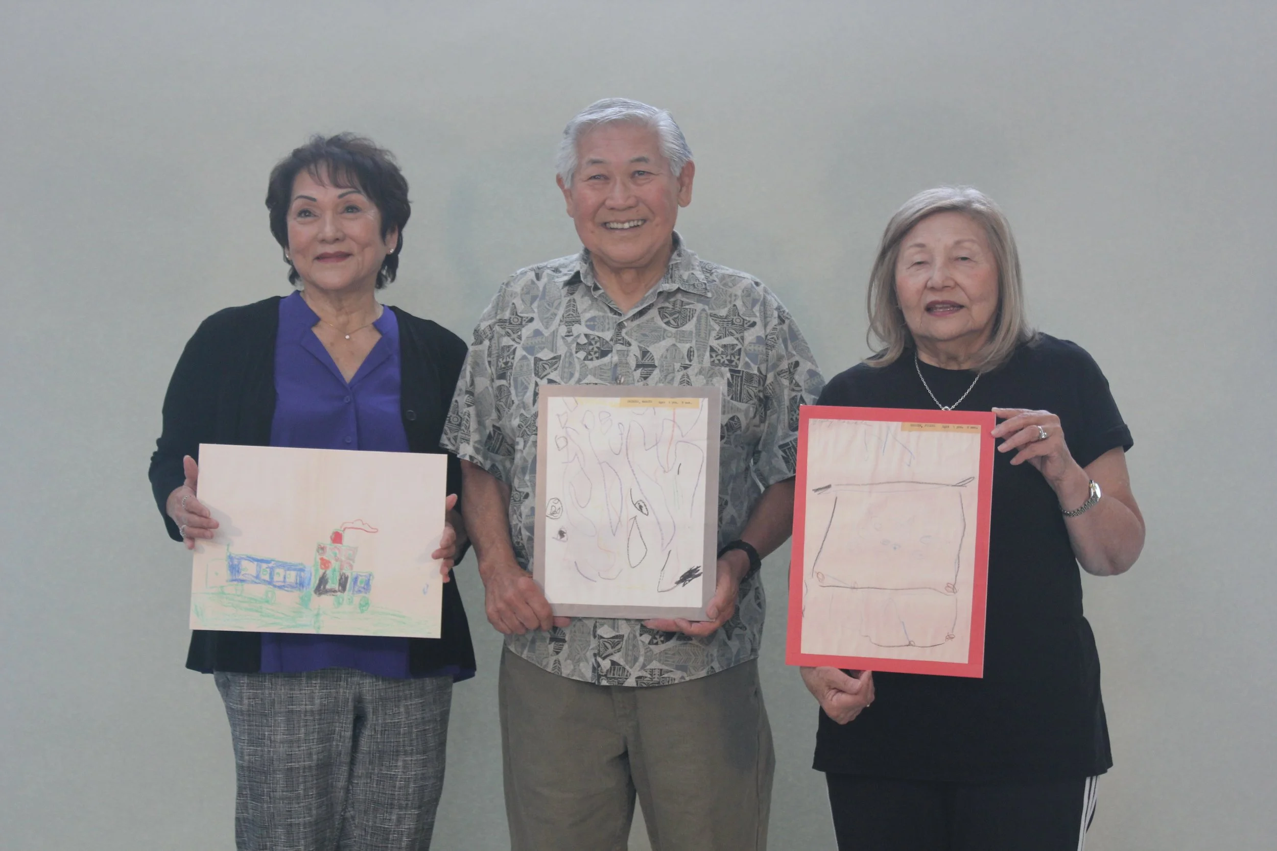 After Tomiko Sasaki passed away, her three daughters found several hand-bound books full of original pieces of children’s art in a trunk labeled “Topaz.” These books had been given to Tomiko by one of the preschool teachers, Alice Okita, as a parting gift when the Topaz Preschools closed in 1945. Tomiko had taken over the role of the Topaz Preschool Director in 1943. After leaving Topaz, Tomiko carefully saved these books for decades.